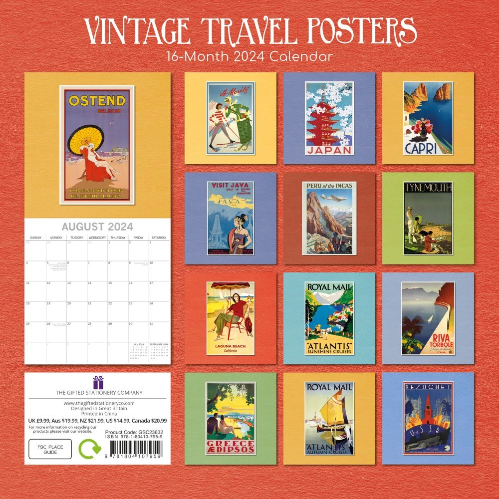 This high quality 2024 calendar is perfect for travel lovers. Stunning high quality images of vintage travel posters are displayed each month, while the large grid is ideal for the home and office with space for birthdays and notes.