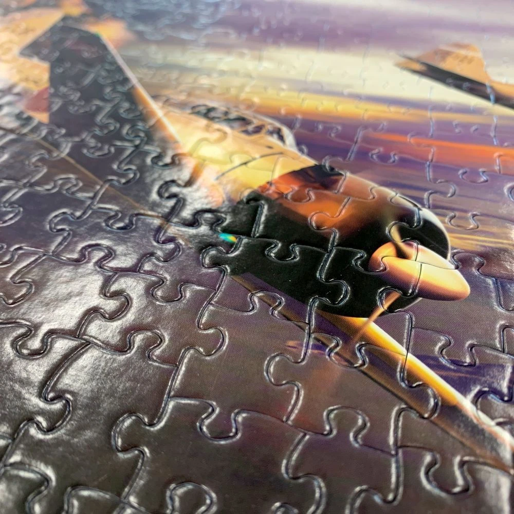 As a renowned aviation artist, Ron Cole specializes in depictions of fighter planes and bombers engaged in air battles over the Pacific and European Theaters during the harrowing years of World War II. His highly authentic paintings include Allied and Axis aircraft and pay tribute to the brave men who served and the iron birds they flew. Proudly made in the U.S.A., this beautiful 1,000 piece jigsaw puzzle features a precision cut image on a high quality blue board. The fully interlocking pieces are poly bagged to ensure their protection inside the shelf friendly, 12″ x 10″ box. The completed puzzle measures 26.625″ x 19.25″.