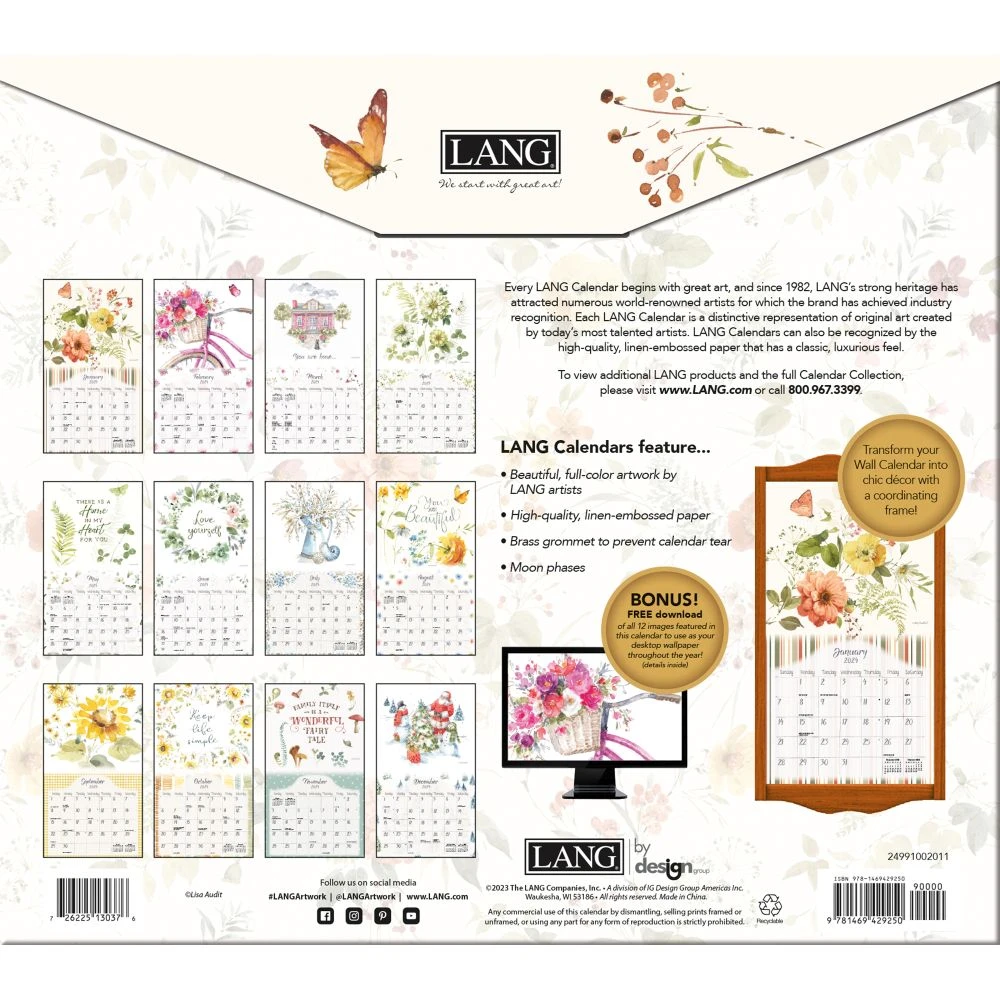 Everyday inspiration meets beautiful art in the Watercolor Seasons 2024Wall Calendar, featuring artwork by Lisa Audit. Complete with all the beautiful and practical features you expect from LANG wall calendars, this high quality calendar includes a matching linen embossed gift sleeve and a brass hanging grommet to prevent calendar tears. Desktop wallpaper download available.