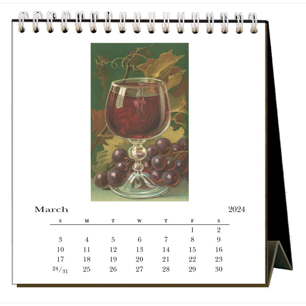 With the Wine 2024 Easel Desk Calendar, its never been easier to celebrate your love of wine! Even when you can’t be at the vineyards, this beautifully crafted desk calendar will bring a bit of vintage glamour to any desktop. Featuring incredible illustrations from vintage wine magazines from 1910 to 1940, this wire o bound easel calendar stands tall and proud. With meticulous attention to detail allowing each month’s image to truly shine, this elegant desk accessory is sure to add a special touch of sophistication and style for years to come. So get ready to indulge your passion for fine wines with vintage elegance every day with the Wine 2024 Easel Desk Calendar. After all every glass should have a story!