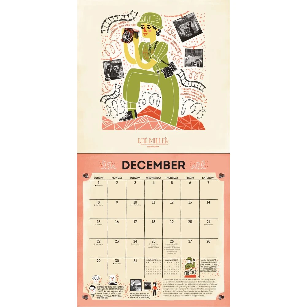 This beautifully illustrated, informative wall calendar features thirteen incredible females who trailblazed to break barriers, set records, and usher new ideas.