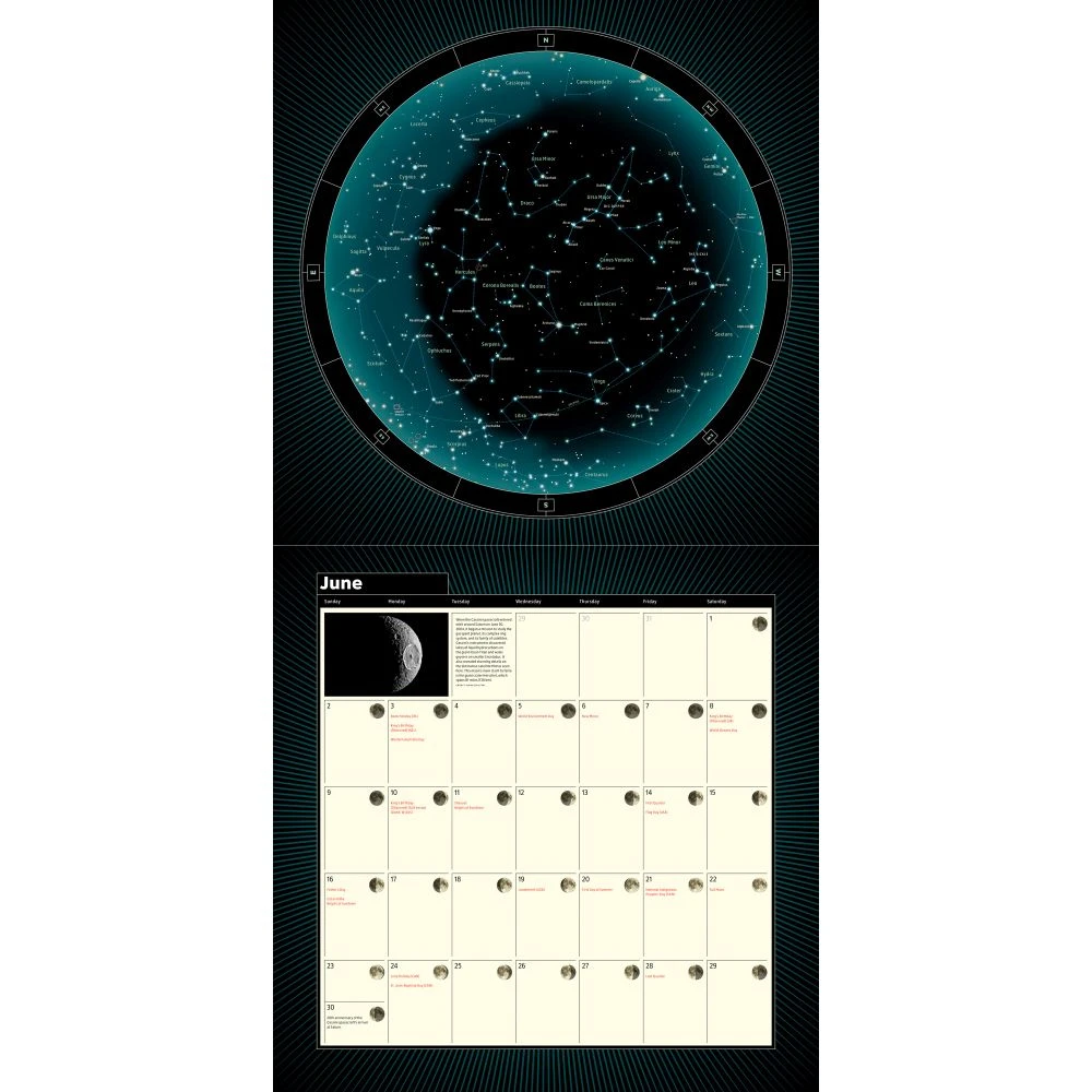 This authoritative, comprehensive, and attractive calendar that explores the world of the night sky, when the stars, the planets, the moons, and countless other mysterious space bodies become visible. Each day of the year is marked with the phase of the moon and other occurring celestial phenomena. Also Included is information on major events in the history of space discovery. A delight for all stargazers.